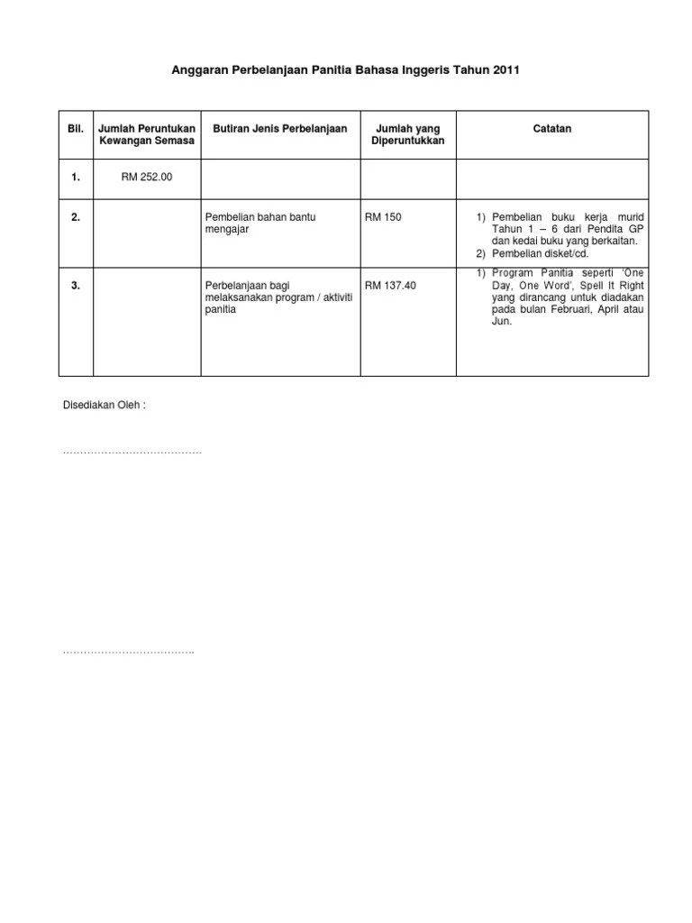 Kertas cadangan contoh anggaran perbelanjaan program.
